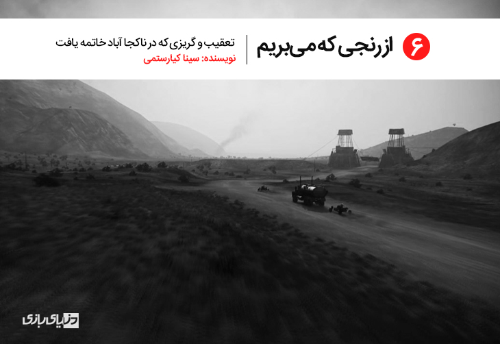 از رنجی که میبریم | تعقیب و گریزی که در ناکجا آباد خاتمه یافت توسط سینا کیارستمی در 3087 روز قبل 1 به جرأت میتوان گفت که تمام آمال و آرزوها و هست و نیست یک فیلم ساز، یک بازیگر، یک نویسنده و یک بازیساز، در مخاطباناش خلاصه میشود. این مخاطبان هستند که با واکنشهای خود نسبت به یک اثر (یک فیلم، یک کتاب، یک بازی یا محصول هنری/ رسانهای دیگری) به صاحب اثر جهت میدهند. این […] مقالات بازی