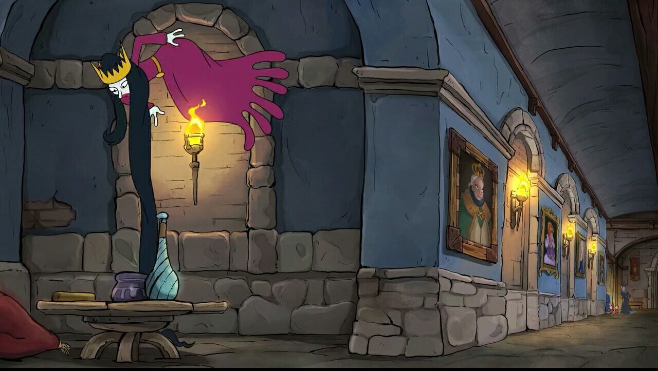 از نظر جلوههای بصری با یک انیمیشن دو بعدی سطح بالا روبرو هستیم. رنگها با وجود تاریک بودن داستان، کاملا پویا و شاداب هستند که همین تناقض زیبا به بار کمدی اثر افزوده است. هم چنین محیطها و طراحی کاراکترها بسیار عالی کار شده است. جزییاتی که در محیط و در اعضای صورت و بدن وجود دارد، خیلی کامل و با دقت کار شده و با اینکه اثر کاملا فانتزی است، اما به طور غیر قابلباوری میتوانید با آن ارتباط برقرار کنید. در مواردی اما با ایراداتی نیز روبهرو میشویم. مثلا در جایی از مجموعه، بین را فردی با چشمهای آبی توصیف میکنند، در حالی که به هیچ وجه چشم آبی و یا سبز در هیچ کدام از کاراکترها نمیبینیم. در شروع بعضی از سکانسها، نمای قصر و شهر به صورت سل شیدد ( همان استایل گرافیکی که در بازی های بوردرلندز وجود دارد میبینیم) نشان داده میشود که مثل محیط دو بعدی زیبا کار شده است. نورپردازیها قابل قبول کار شده و تفکیک رنگها هم همانند نورپردازی قابل قبول است. فیلتری به طور کلی روی رنگها وجود ندارد اما بعضی از محیطها به منظور افزایش تاثیرگذاری از رنگها گرم و سرد به صورت بسیار غلیظ کار شده که به بالا رفتن ارزش اثر کمک زیادی کرده است.