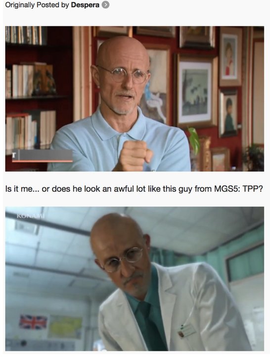 درکل این قضیه ی پیوند سر خیلی داره جدی میشه و طبق گفته های خود دکتر در چند سال آینده هم بطور کامل انجام میشه! اما نکته یا که حائز اهمیته اینه که دلیل این پیوند سر چیه؟ چرا باید یه شخصی مثل کوجیما یه همچین تئوری عجیب و در عین حال چالش برانگیز رو بخواد در فانتوم پین به کار ببره؟ درهرصورت قدم بسیار بزرگ و عجیبی هست! در Metal Gear Solid گری فاکس با قطع شدن یکی از دستانش و همچنین کشته شدنش بوسیله ی لیکوئید میبینیم که خونش قرمز اما خون بدن سایبورگی رایدن سفید رنگ هست! پس اینجا دو احتمال وجود داره که یا بدن رایدن کلا یه چیز دیگه ست یا اینکه ژن های دوفرد با هم فرق میکنه و اون دکتر مجبور شده محتویات خون رو عوض کنه… اما کاملا مشخصه که سازنده ی هر دو بدن یک نفر هستن، پیوند سر هم انجام شده! درمورد شباهت های حرف زدن و حرکات مبارزه ی رایدن و گری فاکس هم میتونیم اینطور فکر کنیم که به دلیل سازنده ی مشترک هست! علاقه ی کوجیما به این نظریه ی پیوند سر از همون ابتدا هم وجود داشته و باید منتظر بود، چون هرچیزی که میدونیم و تا الان به ما نشون داده شده تنها فرضیه هست و نمیشه نظر قطعی داد. کارهای کوجیما همیشه همینطور بوده، هرگز قابل پیش بینی نیست! ۵۰ پاسخ