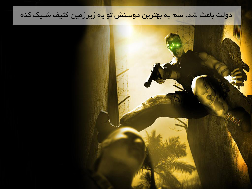 یه منظورم همونه. یه منظوره دیگم اینه که رقبا منظورت متال گیر و هیتمن و بازی دزد هستش دیگه؟ بازم درسته از نظر قدمت از اونا عقب تر بود و با نگاه به اونا نواوری خاصی در سری اسپلینتر سل نمیشد دید. ولی بازم بازیش حسه یه مامور مخفی رو به بهترین شکل منتقل میکرد. ۰۱