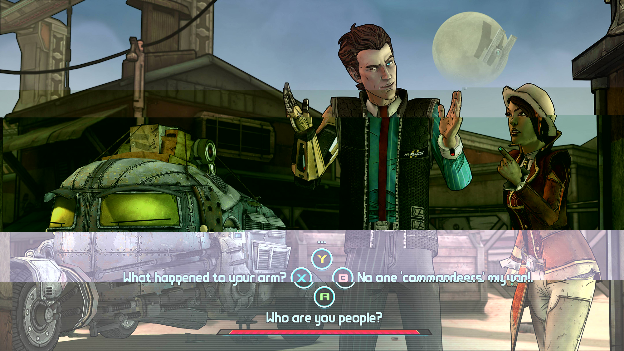 خانه » مقالات بازی دلاش را آب کن، مغزش را بترکان! | نقد Tales From The Borderlands قسمت اول × توسط رضا قرالو در ۱۳۹۳/۰۹/۱۸ , 20:05:34 24 با نقد Tales From The Borderlands قسمت اول همراه دنیای بازی باشید. نام استودیوی تلتیل کاملا برازندهاش است. حداقل ظرف این دو سه سال که از آغاز ساخت بازیهای سریالیشان میگذرد بدون ذرهای شک میتوان لقب قصهگوهای درجه یک و قهار دنیای بازیها را به آنها داد. دو فصل موفق از مجموعهی مردهی متحرک، یک فصل عالی از نوآر فانتزی گرگی در میان ما و حالا داستانی علمی تخیلی برگرفته از مجموعهی نقش آفرینی سرزمینهای مرزی هیچ شکی برایمان باقی نمیگذارد که اگرچه تلتیلیها طراحان مرحلهی قهاری نیستند داستانگوهای درجه یک و قدری هستند که حالا حالاها باید شاهکارهایشان را تجربه کنیم. زیرو عالی است. به موقع سر و کلهاش پیدا میشود به بازی ریتم تند و دیوانه وار میدهد و در اوج افتخار و خفنیت(!) غیباش میزند! حادثه در پاندورا فرمول گیمپلی مثل بقیهی بازیهای سریالی تلتیل است؛ انتخاب، فصلهای جذاب و بهجای کلیدزنی به همراه اندکی کولهپشتی بازی به سبک بازیهای ماجرایی! نکتهی مهم این است که سازندهها برای رسیدن به ریتمی مناسب این بخشها را درجای مناسباش بهکار میگیرند؛ کلیدزنیها بهموقع میآیند و هیجان خلق میکنند و داستان را به جلو هل میدهند و گفتگوهای شاخهای ریتم را بهتعادل میکشانند و قصه را جهت میدهند. باز هم البته مثل قبل عطش کنترل شخصیت قابل بازی وجودتان را فرا میگیرد و دایما در ذهنتان این جمله را تکرار خواهید کرد که«بذار کنترلش کنم دیگه!». البته این نقطهی ضعف بازی به حساب نمیآید و باید از آن به عنوان یک حسن نام برد که البته به نگاه مثبت خودتان هم بستگی دارد. اگر این فرمول ذهنی را هنگام بازی کردن سریالیهای تلتیل رعایت کنید به این نتیجه خواهید رسید که بیخیال نقش کمرنگ گیمپلی در بازی بشوید و از داستان لذت ببرید و تاثیر پر رنگتان در مسیر داستان و شخصیتها را کنترل کنید بهتر از این است که با کلیدهای جهت، شخصیت قابل بازی را چند متر این طرف و آن طرف ببرید! فکر هم میکنم بیشتر کسانی که این متن را میخوانند با این فرمول آشنایی داشته باشند و کارکردش در نحوهی تعریف داستان را بدانند. پس به جز همین اشارهی مختصر چیز اضافهای نمیگویم و میپردازم به جذابترین بخش کار که همان داستان است. ریس یک دست و یک چشم سایبری دارد. این دو وسیله هم در بخش گیمپلی ماجرایی بازی نقش پررنگ و خلاقانهای ایفا میکنند که در مجموعههای تلتیل سابقه نداشته است. مغزش را بترکان! قصه، قصه و باز هم قصه! اگر چیزی غیر از این از مجموعههای تلتیل انتظار دارید بهتر است بروید سراغ بازیهای دیگر. میدانم که خیلی راحت و با یک دو دوتا چهارتای ساده میشود بازی بودن مجموعههای سریالی تلتیل را زیر سوال برد. ولی مساله این است که با وجود کم رنگ بودن گیمپلی در این مجموعهها فقط و فقط میشود در رسانهای به نام بازی آنها را تجربه کرد و نهایت لذت را از داستانهای درجه یکشان برد. این بار هم تلتیلیها داستانشان را عالی تعریف کردهاند. اگر نتیجهگیری میکنم و تا ته این فصل سریال را عالی مینامم به این دلیل است که به سازندهها و قصهگوهای این استودیو اعتماد کامل دارم. مگر میشود در قسمت اول یک بازی سریالی از استودیوی تلتیل یک دنیای درجه یک، شخصیتهای شاهکار و ناب، موقعیتهای کمیک بینظیر و کاشتهای داستانی متعدد داشت و به مجموعهای شاهکار نرسید؟! این بار با همکاری استودیوی Gearbox Software که تم اصلی، دنیای مجموعه و برخی شخصیتهای مجموعهی نقشآفرینی سرزمینهای مرزی را به تلتیلیها قرض دادهاند مجموعهای پنج قسمتی خواهیم داشت. قسمت اول مجموعهی سریالی «قصههایی از سرزمینهای مرزی» (Tales Frome The Borderlands) که «دَخل صفر» (Zer0 Sum) نام دارد، برخلاف سریالیهای قبلی تلتیل دو شخصیت دارد که داستانشان به شکل موازی تعریف میشود. اولین شخصیتی که داستاناش تعریف میشود «ریس» (Rhys) نام دارد که تروی بیکر شاهکاری با صداپیشگیاش به هم زده است. کار درجه یک تروی بیکر را فقط 