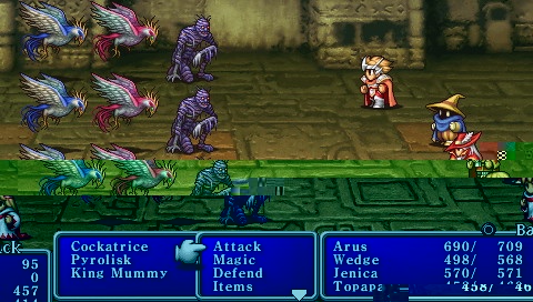 خانه » بازی سازی مشق سبک شناسی: بررسی Final Fantasy I × توسط Number XIII در ۱۳۹۳/۱۱/۲۴ , 15:57:02 11 FINAL FANTASY I فاینال فانتزی ۱ ، یک نقش آفرینی ژاپنی نوبتی با داستانی خطی است. HUD HUD در فاینال فانتزی ۱ شامل: نوار جان (که البته در نسخه های ابتدایی اش نوار نبوده بلکه یه سری عدد بود). یک نوار که با پر شدن آن نوبت به کاراکتر می رسد تا جنگ را شروع کند ( این برای نسخه ی جدید است و کلا از آن به بعد روند مبارزات این طور می شود). پایین صفحه نوار به دو قسمت تبدیل می شود. سمت راست معمولا اسم ما و اعضای گروه ماست و سمت چپ دشمن/دشمن ها. میزان جان و مانا ( یا مجیک پوینت) هم زیر اسم یا روبروی اسم ما نمایش داده می شود. در حالت عادی سمت چپ جز اسم دشمن و تعدادشان، اطلاعاتی از سلامتی و مانای او نشان داده نمی شود مگر آن که جادوی مخصوصی را روی دشمن پیاده کرده باشیم (که در مواقعی علاوه بر سلامتی و مانا، جادو یا ضربه ای که دشمن به آن حساس است را هم به ما می گوید.) در ff1 با چند شغل و ابتدایی ترین job system طرف هستیم. به طور کلی چه در نسخه ی اولیه چه نسخه ی بازسازی شده چند شغل در بازی معرفی می شود: جادوگر سفید، جادوگر سیاه، جادوگر قرمز، جنگاور (Warrior)، دزد (شغل محبوب من )، مبارز (Fighter)، راهب یا همان Monk، که این آخری در نسخه بازسازی شده اضافه شده است. HUD با توجه به شغل کمی متفاوت می شود اما در حالت عادی موارد زیر را داریم: فایت یا مبارزه: نوبتی انجام می شود. هرکس با توجه به سلاحی که مسلح کرده است مبارزه می کند. مجیک یا جادو: جادوهایی که توسط جادوگرها استفاده می شود که بسته به جادوگر، جادو هم تغییر می کند. حالت سوم مسلح کردن : فرصتی برای تجدید نظر در ابزاری که می بایست قبل از جنگ انتخاب می کردیم اما به هر دلیلی نشده و حالا در خلال جنگ می توانیم آن را انتخاب و استفاده کنیم. آیتم: معمولا داروها و PHOENIX DOWN و آیتم های دیگر را از این قسمت استفاده می کنیم. ران یا فرار: وقتی توان یا حوصله مقابله با دشمن را نداریم می توانیم با استفاده از امکان گریز، از میدان نبرد فرار کنیم. نحوه معرفی و استفاده از جادو معمولا جادوها در داخل صندوقچه هایی هستند که پیدا می کنیم و یا آن ها را از مبارزه با غولاخرها بدست می آوریم. هر جادوگر با توجه به کلاس خاص خودش یک نوع خاص جادو را فرا می گیرد. برای معرفی یک جادو در Title menu به قسمت جادوها می رویم و با انتخاب هر جادو پایین صفحه نوشته ای درمورد آن جادو و میزان مانایی که از ما می گیرد می بینیم. نوع مبارزات نوع مبارزات نوبتی است که در آن زیر یا روبروی اسم کاراکترها یک نوار وجود دارد که با پر شدن آن متوجه می شویم حالا نوبت مبارزه ی اوست. صحنه مبارزه در فاینال فانتزی ۱ شخصیت یا شخصیت های اصلی در این بازی امکان انتخاب کاراکتر مقدور است. میتوان از بین چند شغل دزد، جنگاور، جادوگر قرمز، جادوگر سفید و جادوگر سیاه گروهی ۴ نفره را انتخاب کرد (امکان انتخاب دو نفر از یک شغل هم ممکن است). و پس از انتخاب و نام گذاری بازی با ۴ نفر انتخابی شروع می شود. ماموریتهای بازی در فاینال فانتزی ۱ در عین حال که روند بازی خطی است، ماموریت ها در دل داستان جا دارند و از آن ها با لفظ ماموریت یا کوئست به طور جداگانه یاد نمی شود. نقشه در ff نقشه به معنای یک مکان یاب وجود ندارد. Map world درواقع جهانیست که بازی در آن شکل می گیرد. کاراکتر در آن فضای مورد نظر خودش را انتخاب و وارد آن میشود. امکان ذخیره کردن تنها در این مکان وجود دارد. یعنی حین مبارزات و یا داخل اماکن، امکان ذخیره سازی نیست. چگونگی لول آپ شدن در ff کشتن هر دشمنی با توجه به قوی یا ضعیف بودن میزان خاصی از امتیاز تجربه به ما می دهد. با بدست آوردن آن میزان امتیاز تجریه می توانیم لول آپ شویم. سیستم به طور خودکار میزان سلامتی و مانا را افزایش می دهد و هر دفعه برای لول آپ شدن میزان بیشتری امتیاز تجربه لازم است. معمولا آخرین حد لول آپ در فاینال فانتزی ۹۹۹۹ است. کلاسها و محدودیتهای هر کلاس جنگاور: توانایی استفاده از شمشیرها و سلاح های تیز و برنده با قدرت ضربه زنی