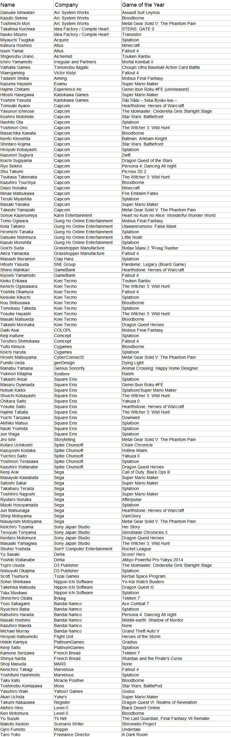 تو اینا فقط تاباتا و کامیا رو می شناسم جالب بود فکرد نمی کردم ژاپنیا به Fallout هم رای بدن :۲۴: اکثرشون هم ندادن ۰۰ پاسخ