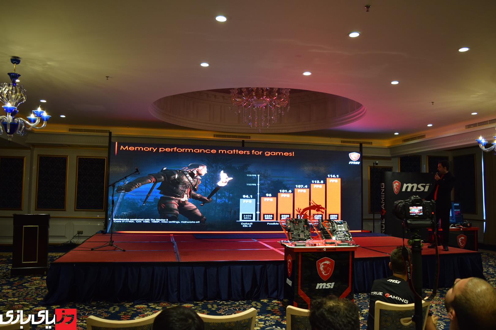 خانه » اخبار بازی گزارش اختصاصی دنیای بازی از مراسم معرفی محصولات جدید MSI × توسط علی فخار در ۱۳۹۶/۰۴/۳۱ , 23:13:57 0 شرکت MSI که مدتی است در ایران به صورت جدی تری در دو بخش لپ تاپ و قطعات گیمینگ به فعالیت میپردازد، به تازگی رویدادی را ترتیب داد تا جدیدترین محصولات این شرکت که در کامپیوتکس ۲۰۱۷ رونمایی شده بودند را در معرض نمایش رسانههای ایرانی قرار دهد. این مراسم که در هتل اسپیناس پالاس برگزار میشد، شامل چند بخش و چند سخنرانی مختلف می شد که سعی داریم به صورت گزارش تصویری شما را با جزییات این رویداد آگاه کنیم. ابتدا شهاب دورفرد از بخش مادربرد MSI روی سن آمد و مادربردهای جدید این شرکت را رونمایی کرد. چهار مادربرد X299 در این مراسم رونمایی شد و دورفرد اذعان داشت که این محصولات هم اکنون در بازار قابل خریداری هستند. این چهار مادربرد عبارت بودند از: X299 Gaming M7 Ack X299 Tomahawk X299 SLi PLUS X299 Gaming Pro Carbon AC به این محصولات قابلیت های جدیدی اضافه شده که از جمله آن ها می توان به Mystic Light Sync اشاره کرد که با آن می توان نورپردازی مادربرد را کنترل کرد. اختصاص پدهای خنک کننده برای M.2 SSD نیز یکی دیگر از قابلیت های جدید این مادربردها است که دمای SSD را پایین نگه می دارد. طهمورث دهقان نیز از بخش کارت گرافیک به معرفی جدیدترین کارت گرافیک های MSI پرداخت. یکی از شاخص ترین محصولاتی که معرفی شد MSI GTX 1080Ti LIGHTNING بود که استفاده از سیستم خنک کنندگی Tri-Frozer باعث شده ۱۸ درصد بهبود انتقال هوا و ۱۳ درصد بهبود دفع حرارت را داشته باشد. این محصول نسبت به نسخه رفرنس اورکلاک شده و سیستم خنک کنندگی آن نیز کاملا متحول شده است. فن های استفاده شده در این گرافیک از مدل TORX 2.0 بوده که این فن ها ۲۲ درصد جریان هوای بیشتری تولید می کند و از طرفی کاملا بی صدا هم هستند. پس از معرفی کارت گرافیک، نوبت به امین پیله چی مسئول بخش لپ تاپ MSI شد تا جدیدترین لپ تاپ های این شرکت را معرفی کند. وی ابتدا اشاره ای به دسته بندی لپ تاپ های MSI داشت و این که هر دسته مختص کدام قشر مخاطب است. در اطراف محل برگزاری تمام لپ تاپ های جدید این شرکت برای تست و بررسی موجود بودند. امین پیله چی با اشاره به کیبرد های جدید و مکانیکی لپ تاپ های MSI، مجددا از همکاری این شرکت با مجموعه Steel Series گفت که این همکاری باعث شده لپ تاپ های MSI از نظر صفحه کلید یکه تاز باشند. نکته دیگری که پیله چی روی آن ها تاکید داشت، صفحه نمایش های این لپ تاپ ها بود. این صفحه نمایش ها ۱۰۰ درصد از طیف رنگی sRGB پشتیبانی می کنند. مدهای مختلفی هم برای حالات و کاربردهای متفاوت در نظر گرفته شده که به صورت نرم افزاری قابل اعمال هستند. در بخش پایانی سخنرانی ها، David Wu به عنوان مسئول بخش All in One به روی سن آمد تا محصولات جدید MSI را رونمایی کند. به نظر می رسد MSI ورودی جدی به کیس های گیمینگ کرده است. دیوید وو گفت که MSI قصد دارد کیس گیمینگ را متحول کند و مشکلات آن را حل کند. برای مثال کیسی که بالا مشاهده می کنید، دارای سه محفظه ی داخلی متفاوت است. این سه محفظه برای کارت گرافیک، پردازنده و منبع تغذیه جدا شده اند تا حرارت داخل کیس یک جا جمع نشود. تست هایی که دیوید وو نشان داد نیز حاکی از آن بود که این روش برای خنک کردن داخل کیس بسیار موثر بوده است. این کیس ها علاوه بر این که کوچک هستند، مشخصات سخت افزاری بسیار قدرتمندی دارند و به راحتی تمام نیازهای گیمرها را مرتفع می سازند. به عنوان مثال به نکات ریزی همچون VR هم دقت شده و جلوی کیس یک درگاه مخصوص VR قرار داده شده است. در ادامه شما را به دیدن تصاویر دیگری از رویداد دعوت می کنم: نویسنده علی فخار Hi MSI دیدگاهتان را بنویسید لغو پاسخبرای ارسال دیدگاه باید وارد شوید