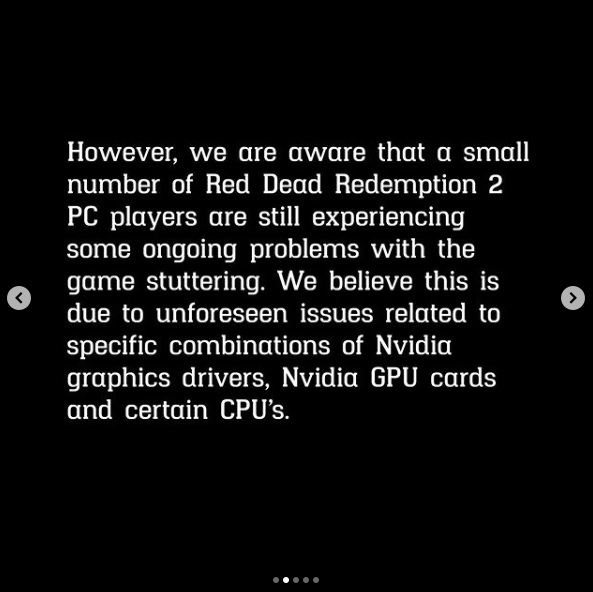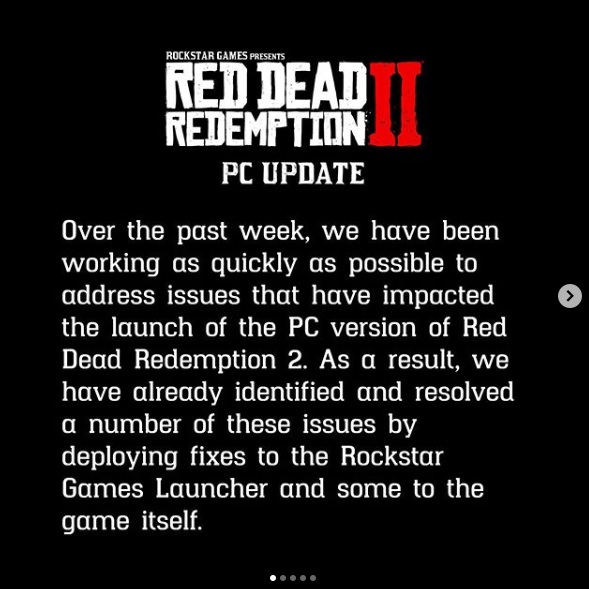 طبق آخرین اخبار بازی، بالاخره بعد از مدت زمان طولانی انتظار، نسخه PC بازی Red Dead Redemption 2 منتشر شد. این امر یک شگفتی فنی بسیار در تمام سطوح یک بازی کامپیوتر ایجاد کرد. البته از همان روز اول متاسفانه مشکلات زیادی برای این بازی گزارش شد و راک‌استار مجبور شد که بروزرسانی‌های زیادی برای بازی و نرم افزار مخصوص بازی‌های خود یعنی Rockstar Games Launcher ارائه کند. با این حال این مشکلات هنوز هم وجود دارند و استودیو هم به‌سختی در حال کار روی آن‌ها است.