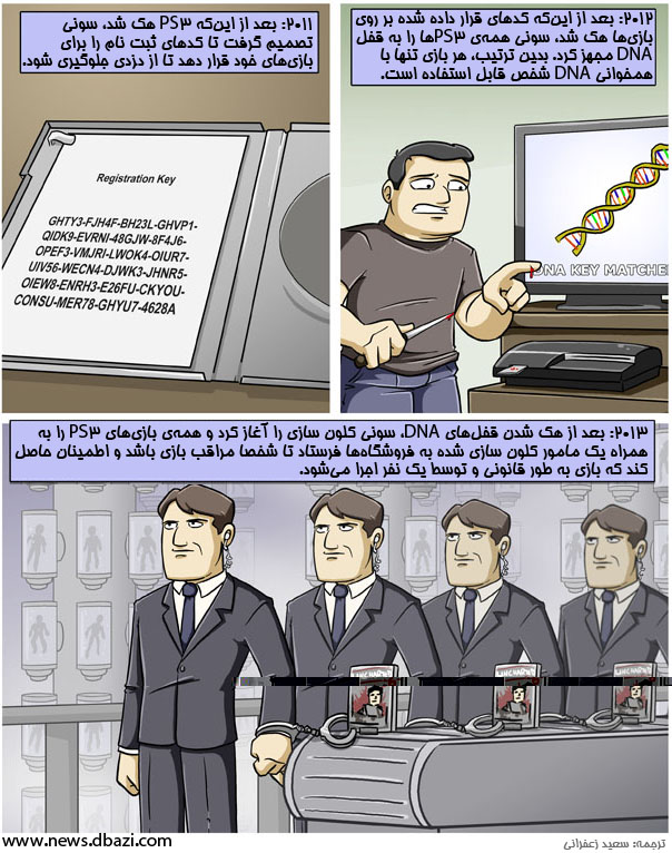 خانه » اخبار بازی سونی طرح قفل بیومتریک برای کنسول خود در نظر دارد × توسط سعید زعفرانی در ۱۳۹۱/۰۷/۰۳ , 16:07:23 31 در یک گواهی ثبت اختراع جالب توجه، Sony Computer Entertainment در صدد ساخت و ارائهی نرم افزاری است که به کنسول اجازه میدهد بفهمد چه کسی در حال استفاده از آن است! این اختراع، شناسایی فرد استفاده کننده از کنسول را از طریق، سنسور اثر انگشت، سنسور دست، سیستم تشخیص چهره، اسکنرهای حرارتی، اسکنر قرنیهی چشم، تحلیلگر نمونهی صدا و تحلیلگر DNA ممکن میسازد. به عنوان مثال، با استفاده از این الگو، تنها کسی که میتواند از کنسول و بازی استفاده کند، آن است که نمونه ی اثر انگشت، DNA، قرنیهی چشم و صدایش قبلا به ثبت رسیده باشد! از این سیستم میتوان در مقابله با دزدیهای دیجیتالی استفاده کرد. سونی، هرگز نگفته است که میخواهد از این سیستم به واقع استفاده کند، و یا دلیل ثبت چنین اختراعی چیست، اما مردم از همین الان شگفت زده به نظر میرسند. اگر شما هم شگفت زده شدهاید، حتما این کمیک زیر را بخوانید که قالبی طنز گونه دارد ولی به همین ماجرا اشاره میکند. گفتنی است این کمیک چند ماه قبل ساخته شده است: اگر به این طرح علاقه مند شدهاید، در این سایت میتوانید گواهی ثبت اختراع آن را با همهی جزئیات مشاهده کنید. (PDF) نویسنده سعید زعفرانی http://www.last.fm/user/SaeeD22000Z اخبار بازی 31 دیدگاه ثبت شده است دیدگاهتان را بنویسید لغو پاسخبرای ارسال دیدگاه باید وارد شوید خیلی مسخرست که این چیزا رو واسه کنسول بذارن!! اولا همونطور که دوستان گفتن مگه میخوای وارد یه مکان فوق سری بشیم!! بعدشم اگر دو نفر از اقوام یا دوستان بخوان با کنسول طرف بازی کنن یه جورایی درسر ساز میشه و کلا مسخره بازیه بیشتر!! اختراعش واسه خودش خوبه ولی برای کنسول ……………………. راستش نه! ۰۰ پاسخ DNA !!! کی میره این همه راه رو ! برای چنین مسئله ای چنین کاری خیلی بعیده :-? “سنسور اثر انگشت، سنسور دست، سیستم تشخیص چهره، اسکنرهای حرارتی، اسکنر “…قرنیهی چشم، تحلیلگر نمونهی صدا و تحلیلگر DNA ممکن میسازد…” یه لحظه این جا رو با جای دیگری اشتباه گرفتم کمیک هم خیلی باحال بود :)) از اون خبرها بود ها :roll: ————————- 8 روز تا دیدار محبوب … ———————— SONY make.believe ۰۰ پاسخ اینجوری باید ۶ صبح بلندشیم تا ساعت ۵ بعد از ظهر آزمایش بدیم آخرم دستگاه قبول نمی کنه دیگه نمیتونیم بازی کنیم!!! :lol: ۰۰ پاسخ فقط یکی کافیه .مثل سیستم بعضی از لپ تاپ ها. ۰۰ من خیلی بعید بدونم یه همچین اتفاقی بیوفته چون جدا احمقانه س! چه خبر بابا! ما می خوایم بازی کنیم نمی خوایم که وارد یه آزمایشگاه فوق سری خطرناک بشیم که! ۰۰ پاسخ «فرد استفاده کننده از کنسول را از طریق، سنسور اثر انگشت، سنسور دست، سیستم تشخیص چهره، اسکنرهای حرارتی، اسکنر قرنیهی چشم، تحلیلگر نمونهی صدا و تحلیلگر DNA ممکن میسازد.» یعنی هر دفعه این همه چیز رو باید چک کنه؟؟!!! :O ۰۰ پاسخ نه اقا فقط یکیش کافیه.همش لازم نیست ۰۰ بابا تو آواتارتو عوض نکردی؟ :twisted: >:) ۰۰ بازیه Unchartedـه تو کمیک!؟ ۰۰ پاسخ بلی . اونم انچارتد ۶ . ۰۰ باحال بود :)) ۰۰ پاسخ اینم مثل کارهای قبلی سونی هک میشه ولی کو تا اون موقع مثل اینکه باید قیدps4 رو از بیخ زد ۰۰ پاسخ :lol: :lol: :lol: کمیکش خدای خنده بود :)) :)) :)) ۰۰ پاسخ :)) ۰۰ پاسخ نمایش بیشتر