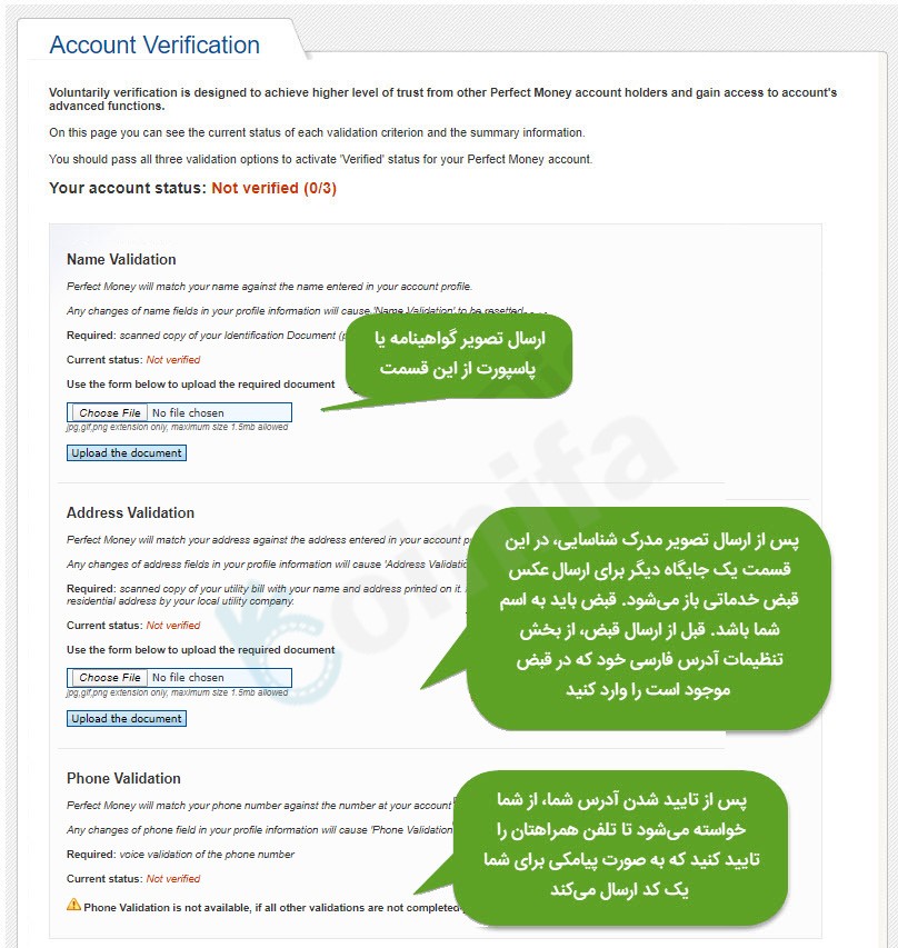 خانه » گزارش آگهی [گزارش آگهی] چگونه حساب پرفکت مانی افتتاح کنیم × توسط دنیای بازی در ۱۳۹۹/۰۱/۲۵ , 00:06:50 0 پرفکت مانی(perfectmoney) یک کمپانی و تکنولوژی پرداخت و برداشت ارز است. با استفاده از این سیستم می توانید به آسانی پرداخت های اینترنتی را در بسیاری از سایت های بین المللی و خارجی انجام دهید. شما با این تکنولوژی می توانید به سرتاسر دنیا ارز انتقال دهید یا اینکه درآمد و سودهای ارزی خود را دریافت نمایید. در این مقاله می خوانید: چگونه حساب پرفکت مانی افتتاح کنیم؟ چگونگی خرید پرفکت مانی و شارژ کردن حساب چگونگی احراز هویت در سایت پرفکت مانی خرید بیت کوین با پرفکت مانی چگونه حساب پرفکت مانی افتتاح کنیم وارد سایت Perfectmoney.Is شوید و بعد از آن فرم ثبت نام را پر کنید. وب سایت رسمی شرکت پرفکت مانی از زبان فارسی نیز پشتیبانی میکند. قابل توجه است که برای افتتاح حساب در این وبسایت هیچگونه هزینه ای نیاز نیست و کاملاً رایگان است. برای ثبت نام روی Signup کلیک کنید یادتان باشد هنگام ثبت نام اطلاعات دقیق و واقعی خود را وارد کنید تا از مشکلات بعدی جلوگیری شود. بعد از اینکه ثبت نام کردید به آدرس ایمیل شما یک کد عضویت ارسال می شود که باید از آن کد برای وارد شدن به حساب کاربری خود استفاده کنید پس یادتان باشد این کد را در جای قابل اطمینان و در دسترس تان یادداشت کنید. به ترتیب از بالا نام کاربری (دلخواه)، نام و نام خانوادگی، شهر، آدرس، کشور، کد پستی، آدرس ایمیل و شماره موبایل خود را وارد کنید اگر راهنمای بیشتری در مورد ثبت نام حساب پرفکت مانی نیاز دارید به آموزش تصویری ساخت حساب پرفکت مانی مراجعه کنید. چگونگی خرید پرفکت مانی و شارژ کردن حساب راه های مختلفی برای خرید و شارژ کردن حساب پرفکت مانی وجود دارد ولی برای کاربران ایرانی بهترین و آسانترین روش مراجعه به سایت های فروشنده پرفکت مانی است. کاربران ایرانی میتوانند به آسانی با استفاده از ریال و کارت بانکی خود به طور آنلاین از وب سایت های ایرانی موجود پرفکت مانی خریداری کنند. وب سایتهای ایرانی فروش پرفکت مانی اغلب دلار پرفکت مانی می فروشند اما در سایت های خارجی هم یورو و هم دلار پرفکت مانی موجود هست اگر کلمه خرید پرفکت مانی را در گوگل جستجو کنید وب سایت های معتبر زیادی را برای شما نمایش می دهند. شما باید برای خرید پرفکت مانی از سایت صرافی ایرانی، تصاویر مدارک شناسایی خود را به آن سایت ارسال کنید و احراز هویت انجام دهید. برای خریدن باید شماره حساب پرفکت مانی خود را به صرافی بدهید تا برای شما واریز کنند.(البته کسانی که نیاز به خرید ووچر پرفکت مانی دارند، دیگر نیازی به داشتن حساب و شماره حساب پرفکت مانی ندارند.فقط کافیست در سایت فروشنده پرفکت مانی(کوینیفا Coinifa.com) احراز هویت انجام داده و سپس شروع به خرید و فروش ووچر پرفکت مانی نمایند.) شماره حساب پرفکت مانی بعد از اینکه شما حساب خود را ساختید وارد پنل کاربری خود شوید. در آنجا می توانید به حساب های خود دسترسی داشته باشید. در اول صفحه پنل کاربری شماره حساب شما کاملاً مشخص است آن را کپی کنید و به صرافی بدهید. مانند عکس بالا در حساب کاربری خود حساب دلاری خود را پیدا کنید آن را کپی کنید و به صرافی مورد نظرتان بدهید تا آنها برای شما واریزی را انجام دهند. چگونگی فروش پرفکت مانی مانند خرید برای فروش پرفکت مانی هم باید به یک سایت معتبر مراجعه کنید و بعد از ثبت نام می توانید پرفکت مانی های خود را برایشان ارسال کنید و در عوض ریال در کارت بانکی خود بگیرید. سایتهای صرافی شما را به درگاه پرفکت مانی خود ارجاع میدهند و شما با یک کلیک پرفکتمانی های مورد نظر خود را برای آن ها می فرستید و بعد از آن ریال را در کارت بانکی خود دریافت می کنید. آیا باید در سایت رسمی پرفکت مانی هم احراز هویت کنیم؟ شرکت پرفکت مانی برای حساب هایی که در سایت رسمی خود احراز هویت نکردند برای هر تراکنش کارمزد ۲ درصدی تعیین کرده و در صورت احراز هویت کارمزد هر تراکنش که انجام میشود به ن