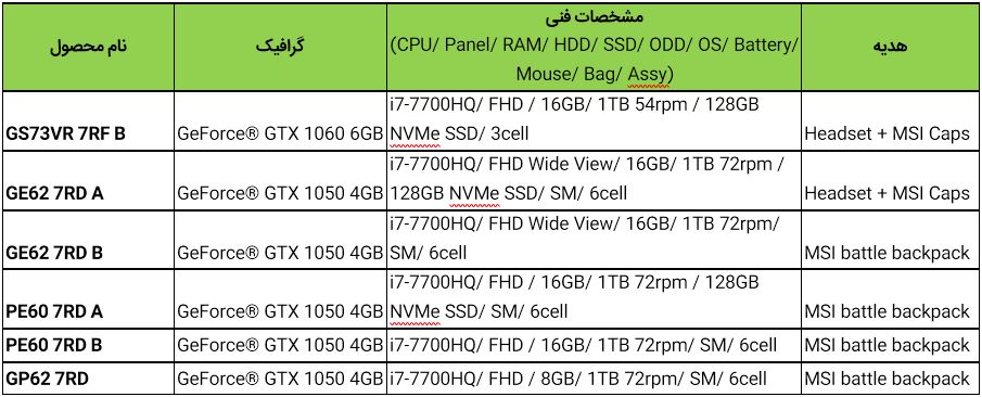 خانه » اخبار فناوری فروش ویژه لپتاپهای گیمینگ MSI در فصل تابستان ۹۶ × توسط دنیای بازی در ۱۳۹۶/۰۴/۲۱ , 10:00:18 0 بخش لپتاپ شرکت MSI در ایران با همکاری دیجیکالا فروش ویژه محصولات گیمینگ خود را همراه با هدایایی ویژه آغاز کرده است. این فروش ویژه که به مدت محدود برقرار خواهد بود برای شش لپتاپ MSI در نظر گرفته شده است. با خرید هر از یک از این محصولات، MSI به شما هدیهای ویژه میدهد. این هدیه هدست، کلاه یا کولهپشتی خواهد بود که در جدول زیر مشخص شده هر هدیه مخصوص خرید کدام محصول است. برای خرید و کسب اطلاعات بیشتر میتوانید به این صفحه در دیجیکالا مراجعه کنید. نویسنده دنیای بازی وبسایت خبری تحلیلی دنیای بازی اخبار فناوری دیدگاهتان را بنویسید لغو پاسخبرای ارسال دیدگاه باید وارد شوید